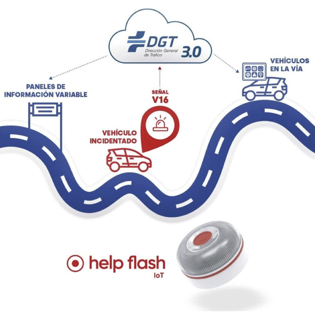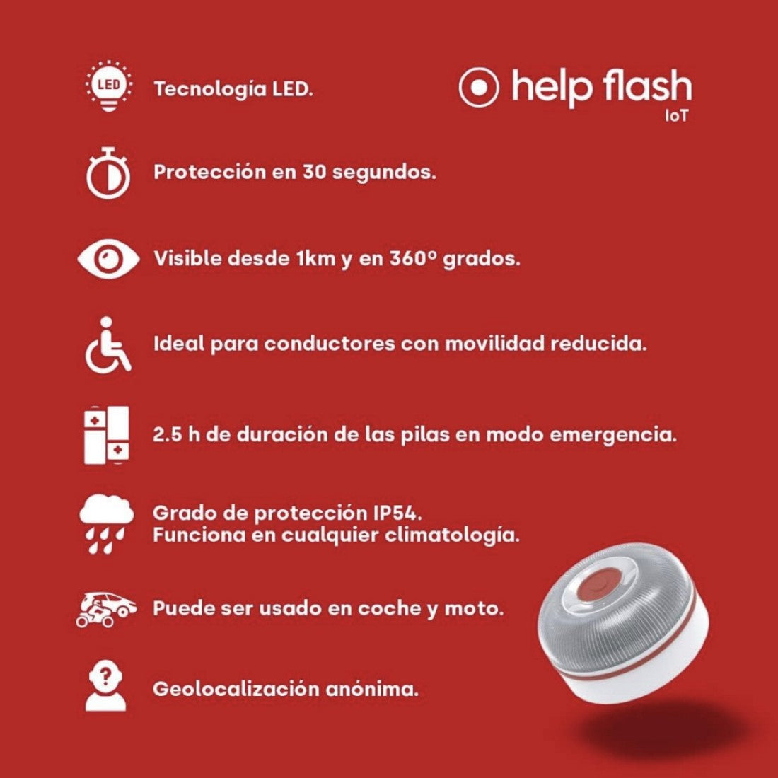 OBLIGATORIA: Desde enero de 2026, todos los vehículos que circulen por España deberán contar con este dispositivo. La baliza Help Flash garantiza una visibilidad óptima, aumentando la seguridad en situaciones de emergencia.